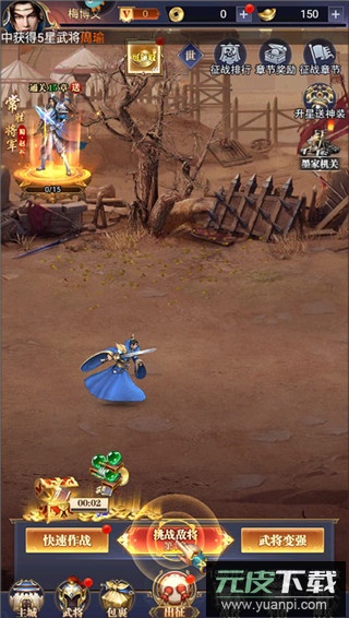 4、返回主界面,点击下方的出征按钮,选择挑战即可开启战斗;