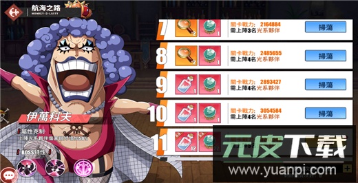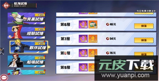 副本存在属性克制关系,并强制要求上阵一定数量的克制角色。每层首通奖励更为丰厚,建议优先领取首通奖励,再根据航海图当前等级需求,针对性扫荡所需素材。