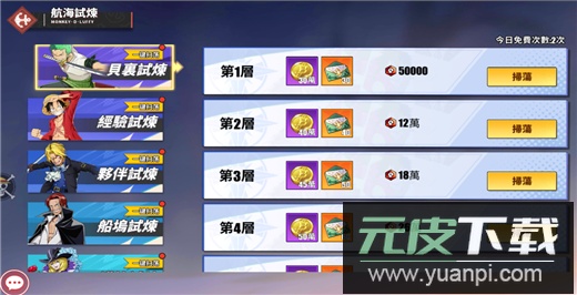 该玩法主要用于收集航海图的升级素材。不同属性的副本将在周一至周五轮流开放,周六日则全部开启。