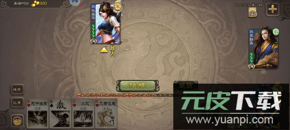 9. 张春华:需500手杀豆兑换获得;斗地主模式中作为地主有较强战斗力,但不建议用作农民;军争场适应性较广,各个身份均可尝试。