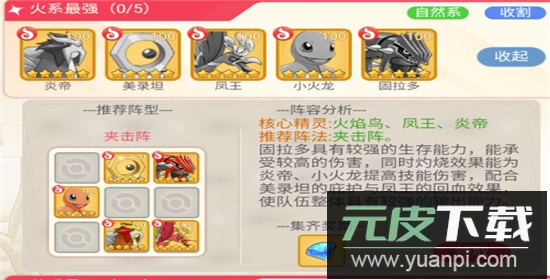 推荐阵法:夹击阵。固拉多生存能力突出,可承受大量伤害,其灼烧效果能强化炎帝与小火的技能威力;搭配美录坦的护盾与凤王的治疗,使队伍整体攻防兼备。
