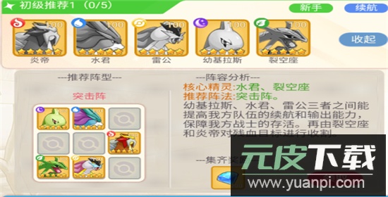 推荐阵法:突击阵。幼基拉斯、水君与雷公的组合能提升队伍续航与输出,保障前排稳定;裂空座和炎帝则负责清理残存目标。