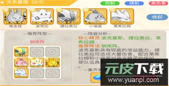 推荐阵法:钢尾阵。波克基斯提供强大增益效果,捷拉奥拉输出显著,结合莱希拉姆与小福蛋的保护能力,让队伍持续作战与爆发伤害兼备。