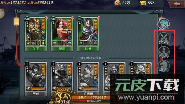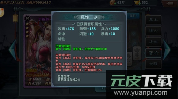 4、军衔:51级开启,消耗“将魂”提升军衔等级,从而解锁新的属性加成与技能效果。