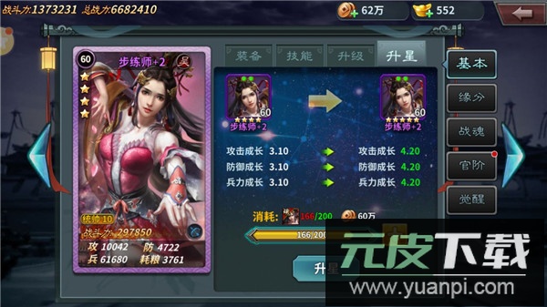 升星(15级开放):消耗指定武将的将魂或通用将魂进行升星,显著提升武将的成长潜力。