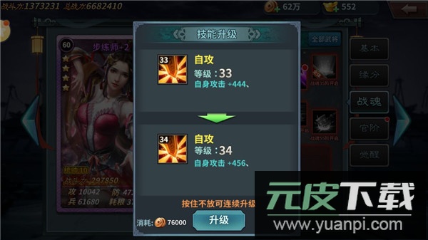 战魂进阶:主要消耗魂玉与武将信物来提升魂技等级上限,并解锁全新魂技。