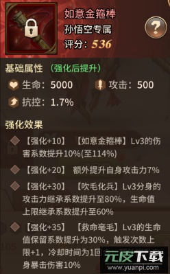 1.强化+10:提升悟空伤害下限,强化压血线能力,同时增强输出使十五回合后比拼伤害多一分胜算;