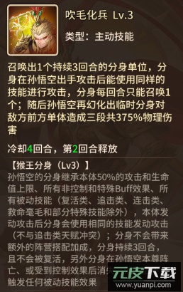 猴王分身:本体攻击后分身模仿行动,造成原技能50%伤害,相当于自带高配版物连,且不与物连天赋重复。