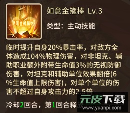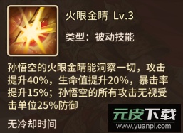提示:悟空一技能伤害上限为2.5倍攻击力,若想达到上限需将暴击伤害提至219%。但因存在生命百分比伤害加成,实际暴伤达到200%即可。