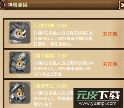 4、神兽上阵可提供特殊效果,根据队伍配置选择合适的神兽,例如增加真实伤害或降低敌方命中率,能大幅提高战斗效率。