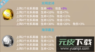 2、英雄间存在明确的属性克制,例如水能克火,火能克风,风能克水,光与暗则相互制约;巧妙利用这种关系可以提升胜算。