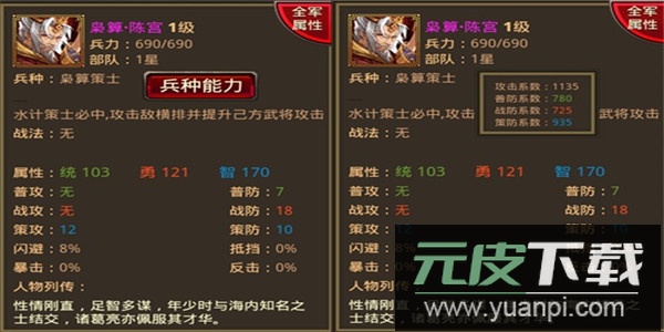 双方策攻值相同,可见枭算·陈宫的基础输出能力明显更高。