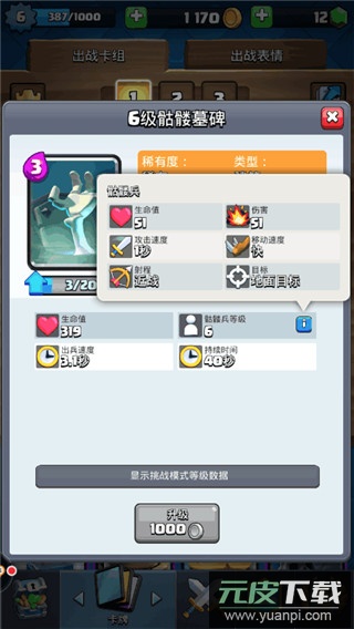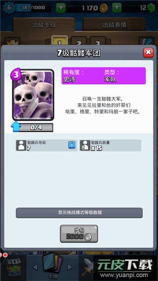 骷髅军团:仅需三点圣水,虽生命脆弱但数量众多,能有效牵制皮卡超人、巨人等地面大型单位,是前期防御的关键卡牌之一。