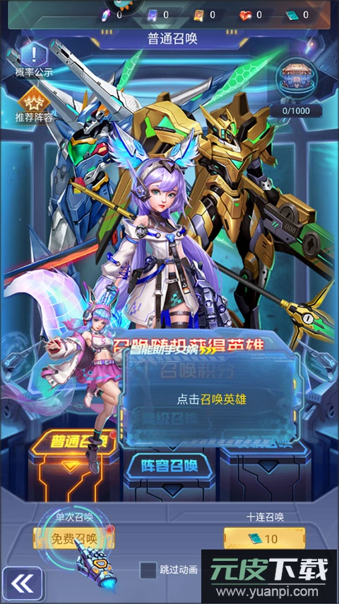 2、进入游戏界面后,点击召唤英雄组建你的初始队伍。