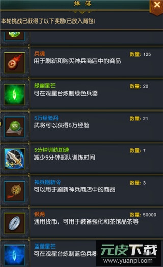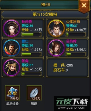 3、挑战玩法是效率极高的选择。通过横扫战役关卡能够稳定获得银两;在过关斩将模式中,每通过五关开启的宝箱也包含大量银两奖励,并且该模式同样支持无损兵的横扫功能。