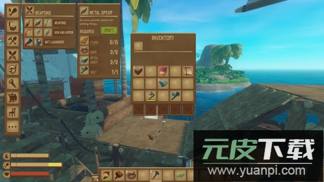 4、多样的资源循环:收集并加工飞机残骸与各类漂浮物,利用它们扩展木筏规模并制造生存设备。
