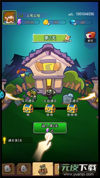 1、进入游戏后可见多个关卡,达成不同通关条件可获得对应宝箱;