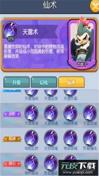 4、雷震子:雷属性即时仙术,对命中目标造成伤害并产生小范围溅射,附加麻痹效果。