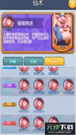 2、猪八戒:土属性地面弹道仙术,对路径上所有怪物造成伤害,产生击退与减速效果,且无法被拦截。