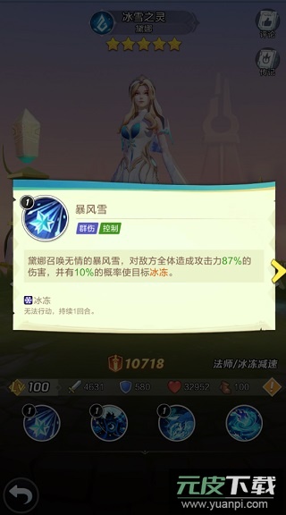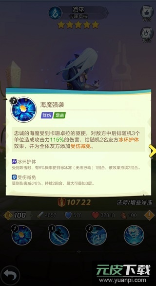 凛风咆哮:普攻附加破甲,对冰冻目标增伤;技能攻击纵列并概率冰冻,普攻及释放技能后追加纵列攻击,对后排威胁大,属于暴力输出。