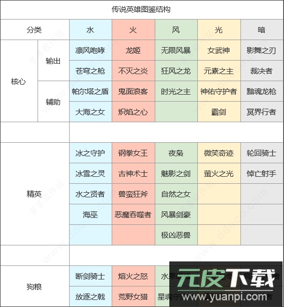 2、忽略史诗品质英雄,传说英雄可根据技能强度与获取难度分类如下: