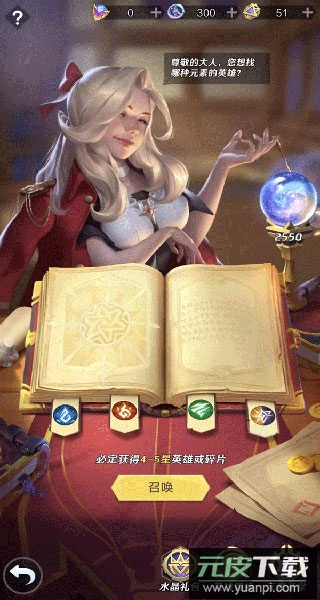 除常规招募外,玩家还可通过元素招募获取英雄。消耗元素水晶可针对特定系别进行招募,从而更精准地搭配阵容。