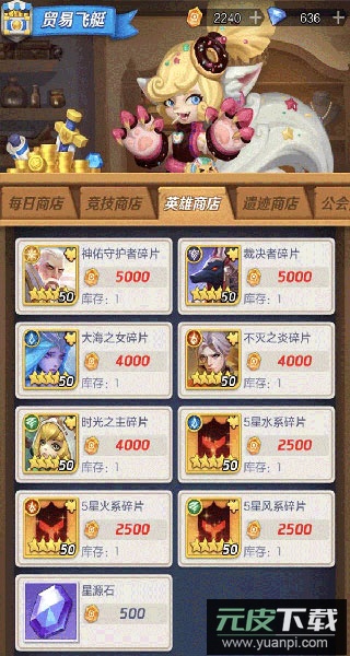 游戏内的贸易飞艇是兑换资源的便捷渠道,提供突破石、高级招募券、冒险者积分等多种物资;英雄碎片也可在此获取。