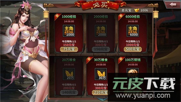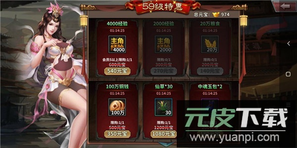 5、新手期“必买”活动:开服七天内每日刷新包含主角经验在内的基础资源,可用元宝购买,可根据自身需要适量购入;