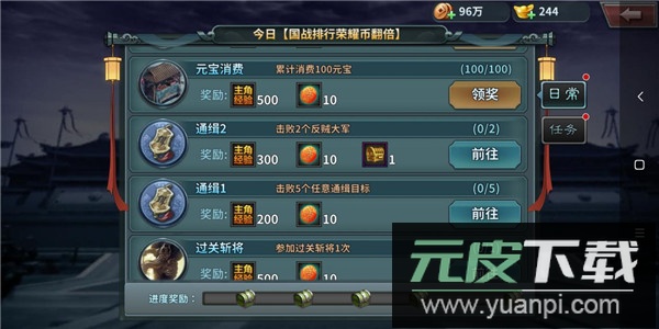 2、日常任务:每日完成日常任务可获得固定经验,建议尽量全部完成;