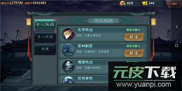 3、挑战副本:单人挑战如名将挑战与密林剿匪能获取主角经验;多人战役也可获得,但数量相对较少;