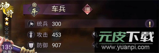 武将按兵种可分为弓、步、器、车、骑五类;其中步、车、骑属于近战兵种,弓与器则为远程。近战武将技能多侧重免伤,远程则偏向攻击强化。后期主流阵容通常采用三前排搭配二后排的组合。
