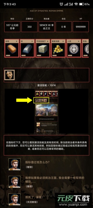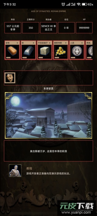 2、屏幕顶部清晰展示着核心状态指标,你能直接查看当前年份、统治者姓名与在位时长等关键信息。