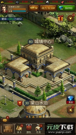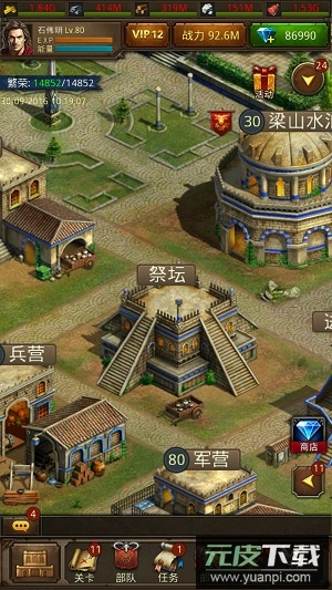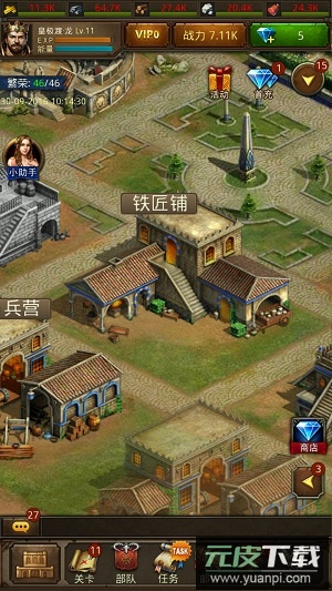 在城内空地建设,消耗资源与时间,支持钻石替代资源不足的情况。
