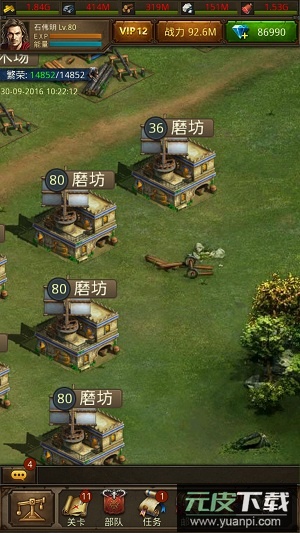功能:提高粮食产出效率;每提升10级城镇中心,可增建一座磨坊。