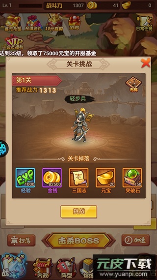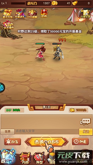 2、游戏内可选择挂机挑战关卡或是点击挑战BOSS。