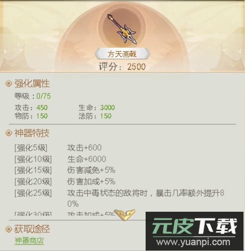 神器升级不仅增强吕布基础属性,还赋予伤害加成与伤害减免效果;达到特定等级后更能强化怒气技能,整体提升其作战能力。