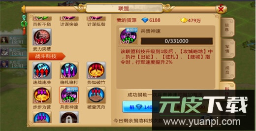 联盟科技能够提升成员在攻城战斗中的属性。科技由盟主发起,之后需要全体成员捐献资金来共同升级。