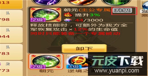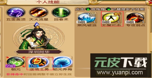 主公与武将均拥有专属技能,专属技能可升级,共分五个档次,效果随等级提升而增强。
