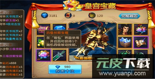 皇宫宝藏中也有机会抽取四级技能与技能兑换石。