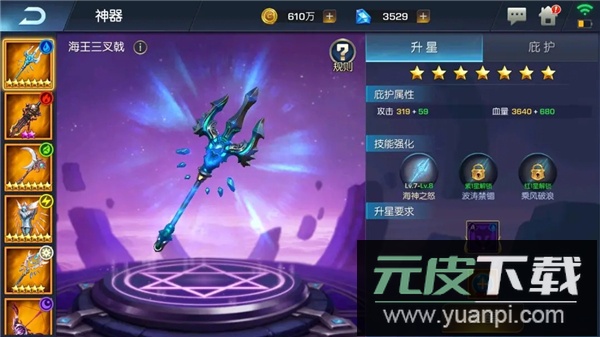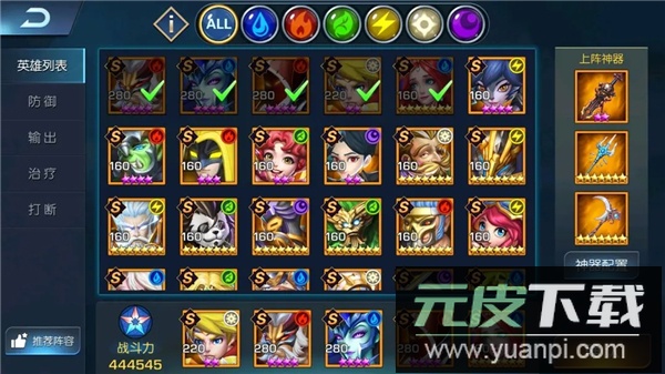 3、当英雄池中某种元素的力量累积到一定程度,还将激活神秘而强大的神器系统,神器将在每场战斗中提供至关重要的助力。