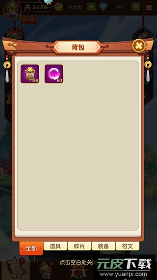 点击右上角背包图标,能够查看当前持有的所有道具与材料。