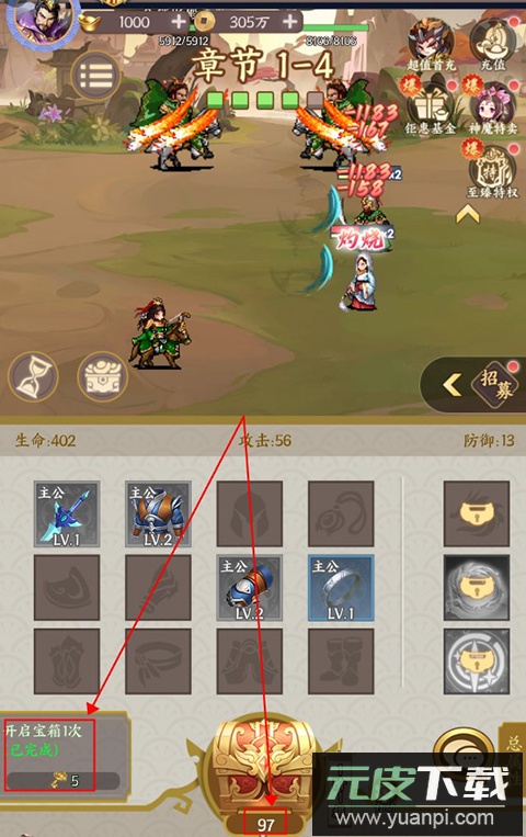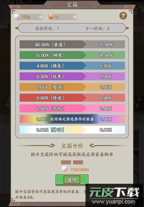 4、宝箱可升级进阶,等级越高获得装备的品质越好;