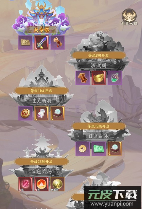 6、游戏内还设有天命塔、演武阁等多样玩法,挑战可获得丰富资源。
