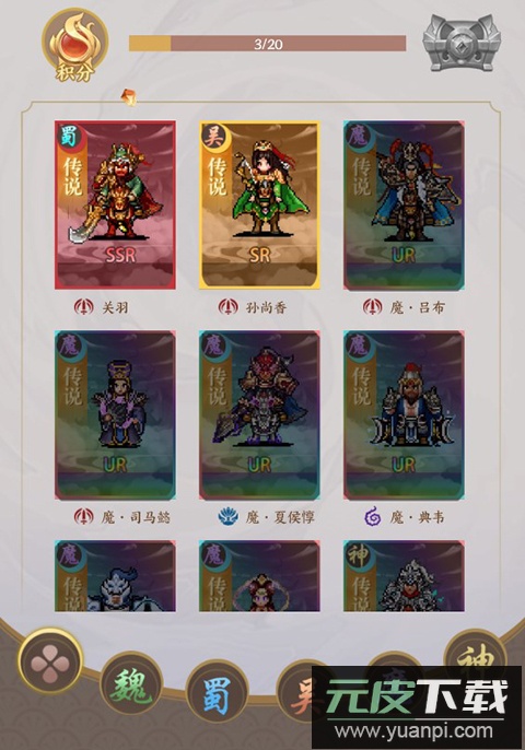 1、众多三国武将可供收集与培养,通过进阶提升属性,打造强力阵容;