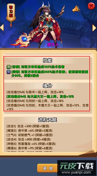 4、点击打开武将详情界面,可以仔细查看该武将的技能效果和缘分关系。