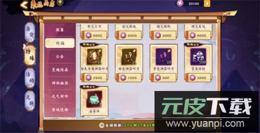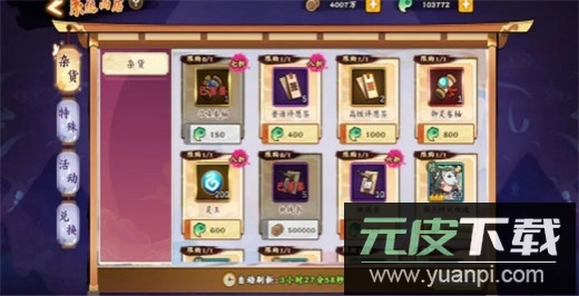 杂货商店:每日一百五十勾玉的高级召唤券必买,其余资源可优先考虑挑战书、英魂与进阶石。