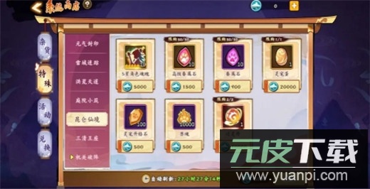 昆仑仙境商店:推荐兑换高级眷属石。