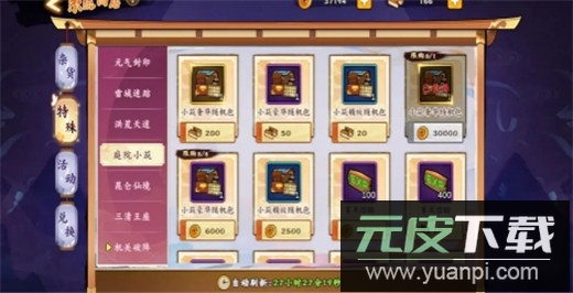 开天辟地商店:使用金货兑换一千二百五十勾玉十个召唤券的礼包,银货兑换七百五十勾玉五个召唤券的礼包;勾玉类商品不建议购买。铜币可优先兑换英魂与进阶石,挑战书与普通祈福券根据自身储备决定,四星碎片因可通过每日挑战及元气封印获取,需求相对较低。