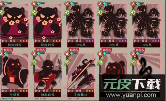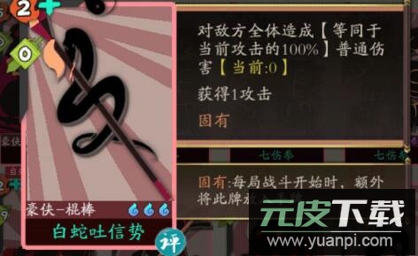 白蛇吐信势:升级后自带固有与攻击加成,是首回合触发追击的蓝色辅助卡牌。