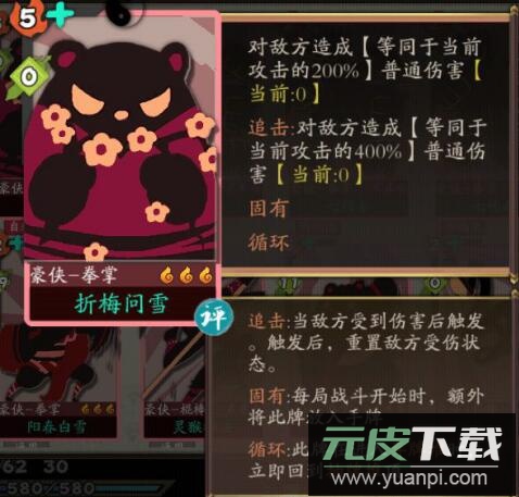 评价:相比折梅问雪,初始攻击不俗,升级后追击倍率可观,且费用较低,可作为折梅问雪的替代选择。
